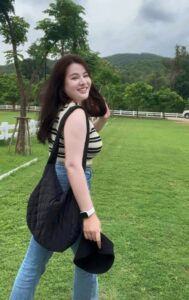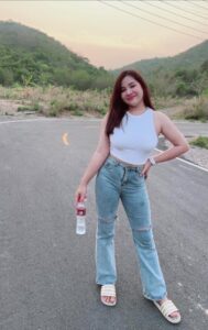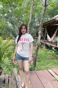 น่ารัก ในความเป็นจริงก็คือ เป็นผู้หญิงสายลุยมากกว่า ชอบปีนเขา ชอบกิจกรรมกลางแจ้ง เชื่อไหมว่าออกทริปขึ้นเขาบ่อยมาก แต่ผิวพรรณก็ยังดีอยู่ ทางด้านของรูปร่างก็ด้วยเหมือนกัน เธอนั้นเป็นสาวร่างอวบจริง แต่เป็นอวบที่ดูดีดูเซ็กซี่ เอวเล็ก อกใหญ่ สะโพกบึ้ม หนุ่ม ๆ จะต้องได้เห็นมุมเซ็กซี่ ๆ ของสาวสวยของเรา