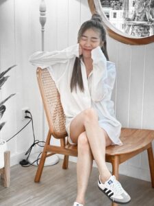 เกาหลี/ญี่ปุ่น ก็ดูสวย มีเสน่ห์ เรียกว่าน้องมาลุคขาวสวยหมวยอินเตอร์ก็ว่าได้ ส่วนเรื่องบุคลิกน้องเป็นผู้หญิงที่มีความมั่นใจในตัวเอง ดังนั้นการถ่ายภาพของน้องจึงดูเป็นธรรมชาติแบบสาวมั่นและอีกหนึ่งงานของเธอ ที่ไม่พูดถึงไม่ได้คือน้องเป็นเจ้าของ แบรนด์ใบเฟิร์นลอยแก้ว ขนมหรือของหวานไทยแบบหนึ่งที่เป็นผลไม้