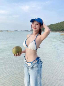 โดยเธอนั้นได้ใส่ ชุดบิกินี่ สีขาวและโพสท่านั่งสุดแซ่บ ลองนึกภาพดูว่า ชุดบิกินี่ ขาว ๆ หากเปียกน้ำจะ เซ็กซี่ มากแค่ไหน บอกเลยว่างานดีมาก ๆ ด้วยความที่เป็นสาวขี้เล่น มีความทะเล้นในตัวสูงเมื่อต้องมาถ่ายแบบชุดว่ายน้ำก็ทำให้เธอนั้นสามารถถ่ายทอด